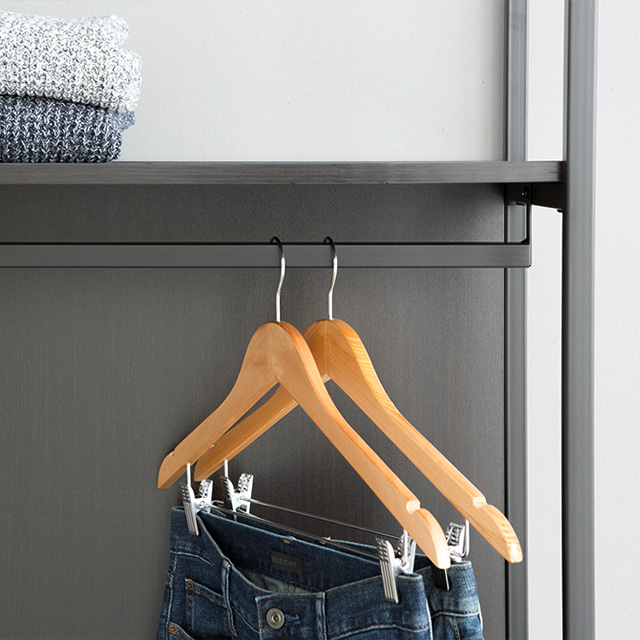 2단 행거로 많은 옷을 걸어둘 수 있으며
