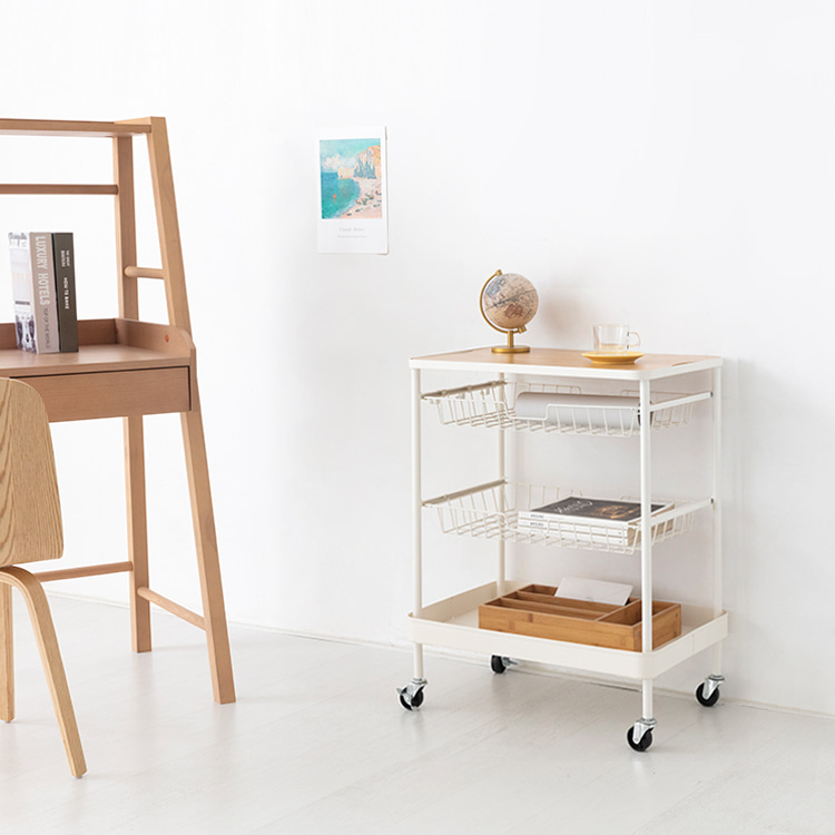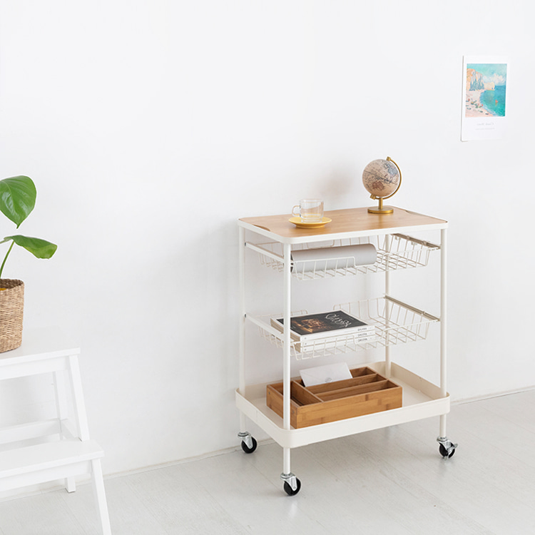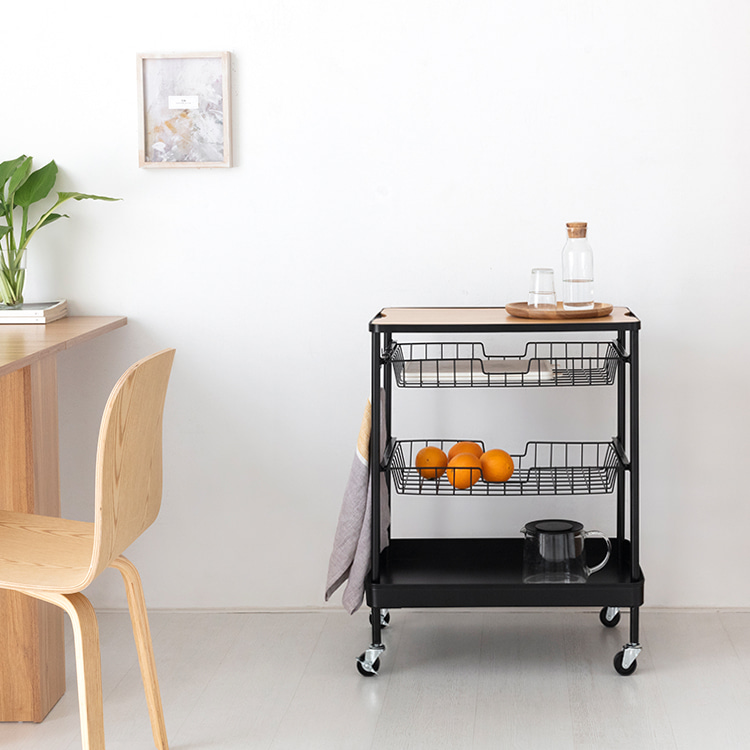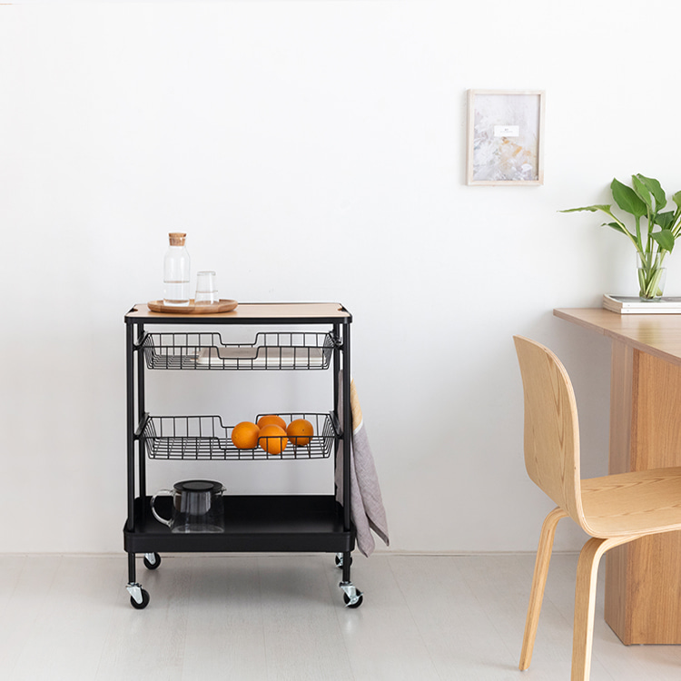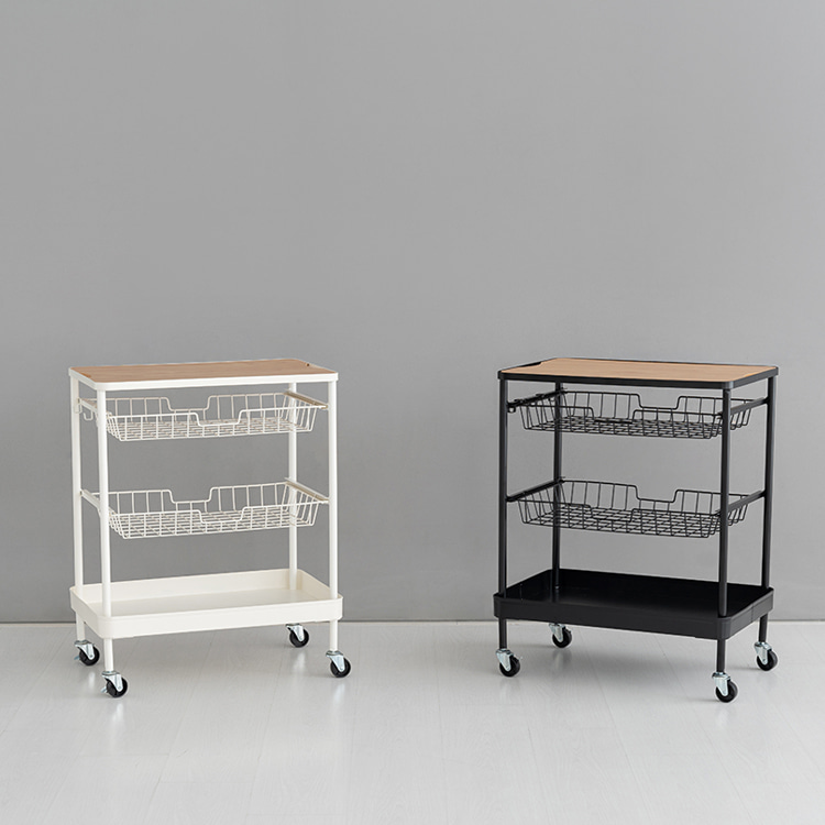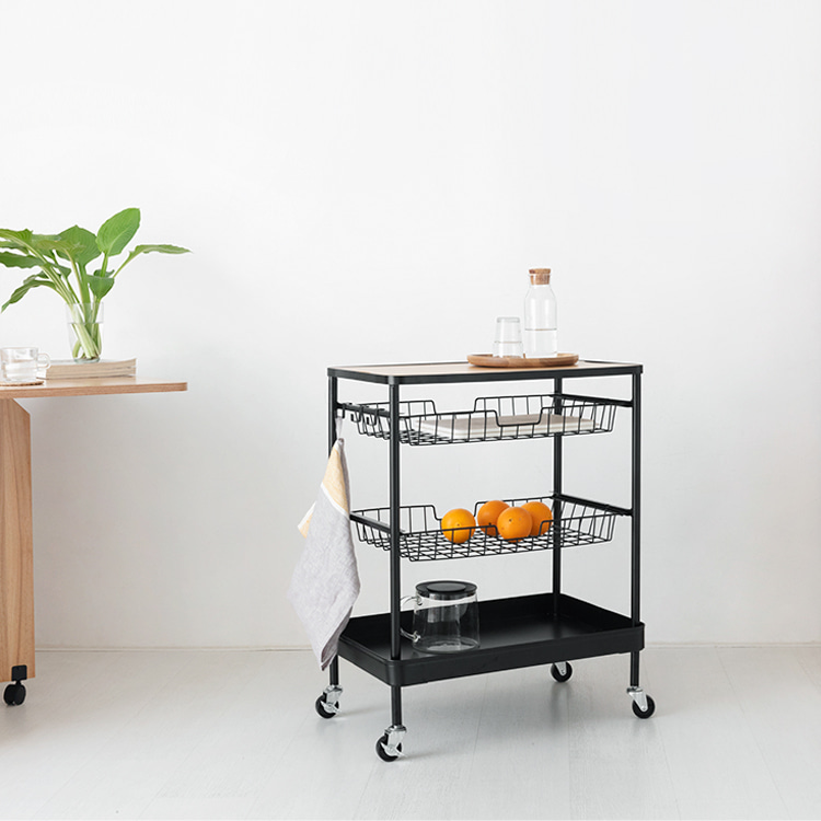 견고한스틸본체 심플모던 깔끔한스타일 마켓비 매쉬선반형 트롤리 : 범즈몰