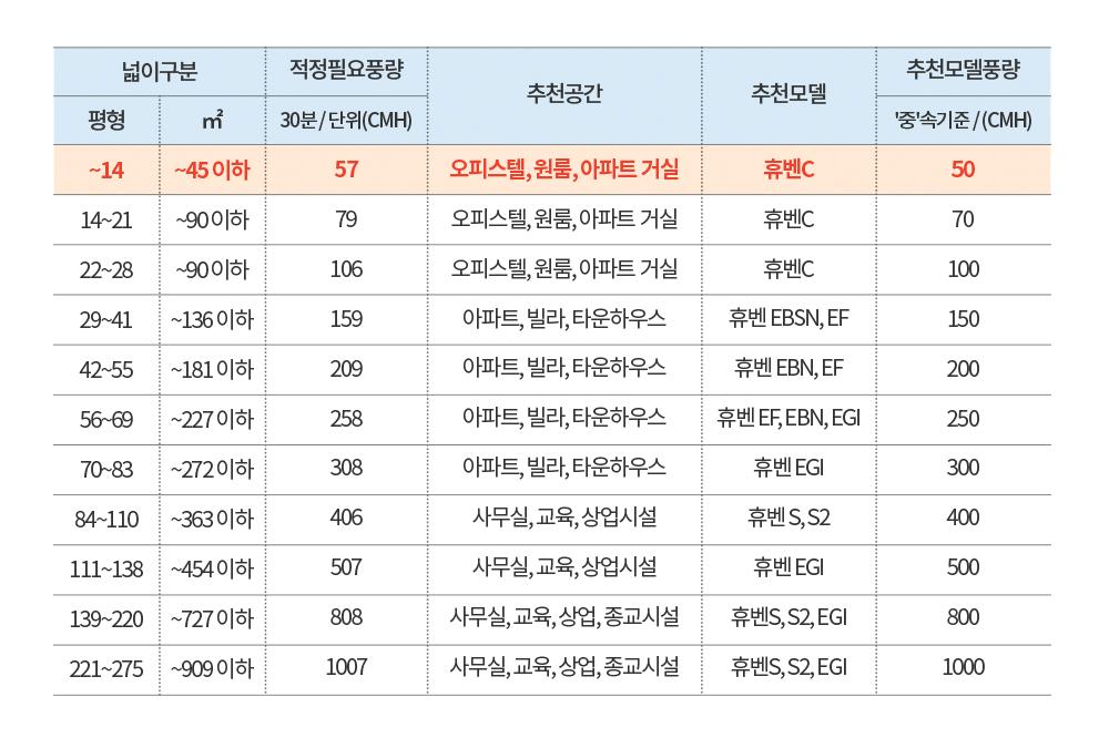 전열교환기는 크게 가정용과 상업용으로 나눠서 최적환기량을 계산합니다. 그에 따른 세부사항으로는 평수와 최대 상주 인원을 고려하여 적절한 환기량의 제품을 권장하게 됩니다. 이부분은 하단의 연락처로 연락을 주시면 친절하게 안내해 드리겠습니다 :)
