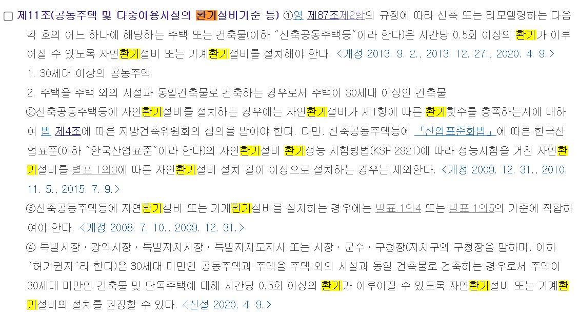 이상 전열교환기의 적정 풍량과 CMH에 대해서 알아봤습니다. 아직 명확한 기준이 마련되어 있지 않아 의견이 분분하지만 대략 위에서 안내한, '건축물의 설비기준 등에 관한 규칙」 제11조제1항제1호'를 기준으로 풍량을 계산하고 있습니다.