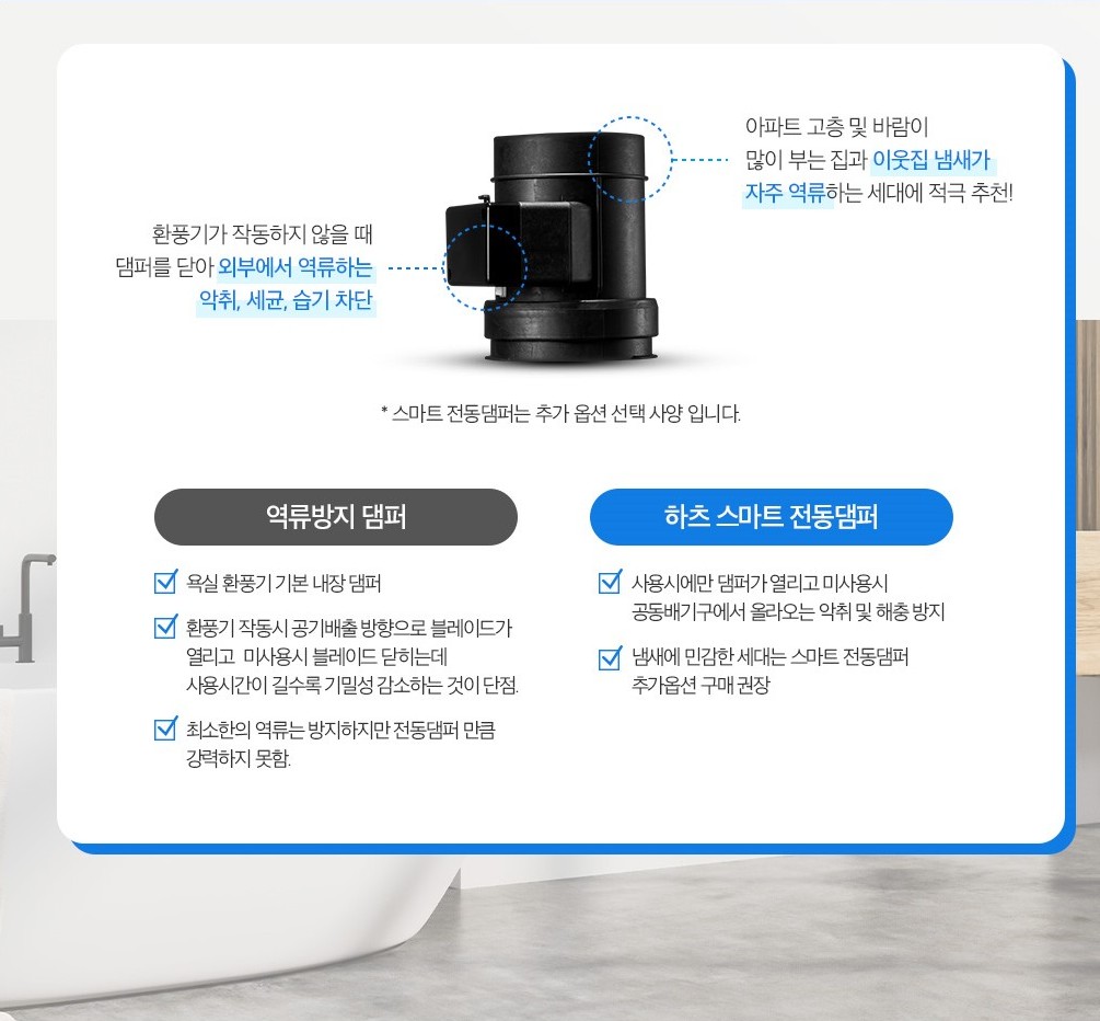 옵션선택 시 하츠 역류방지 전동댐퍼는