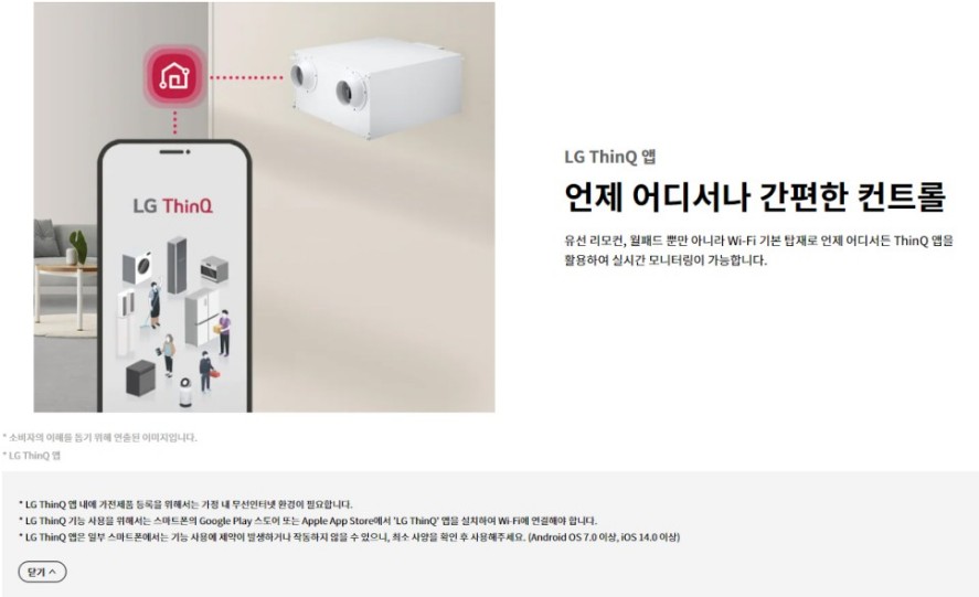 와이파이 기본 탑재로 LG ThinQ앱을 통해 실시간으로