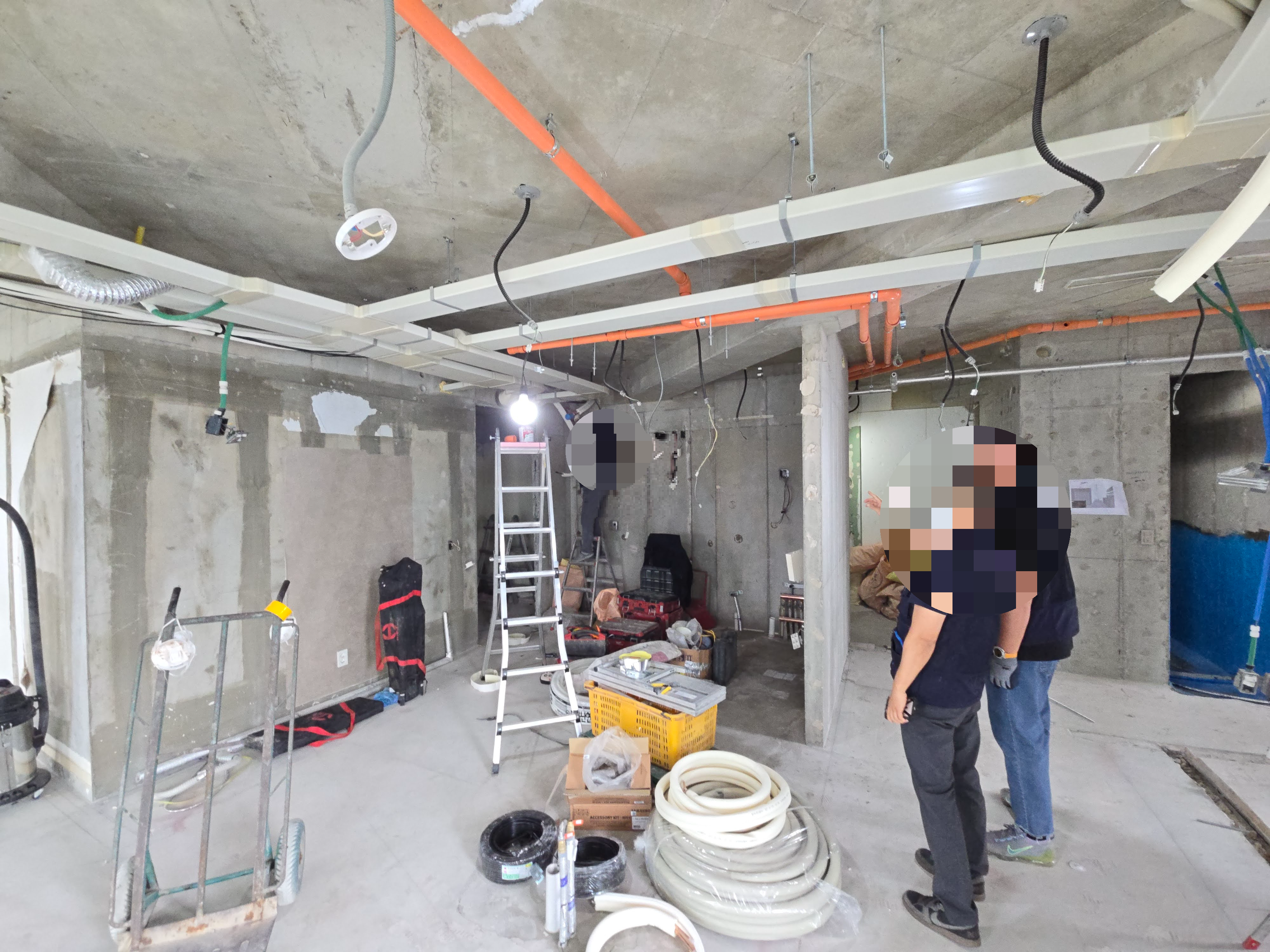 인테리어 현장에서 전열교환기 교체를 진행할 때 가장 중요하게 관리해야 하는 것은 '시공 일정의 조율'입니다. 여러 전문 팀(전기, 에어컨, 도배, 환기 시스템 등)의 작업 공정이 겹치거나 동선이 꼬이면 불필요한 시간과 비용이 발생할 수 있습니다. 판교 현장 또한 일시적으로 다수의 팀이 동시에 작업하는 상황이 발생하여 면밀한 조율이 필요했습니다.